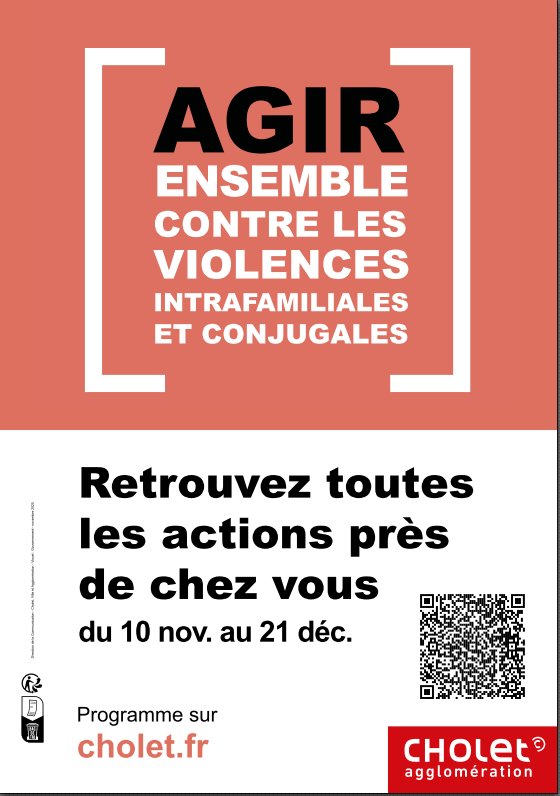 Dans le cadre de la lutte contre les violences faites aux femmes et en lien avec la journée internationale du " 25 novembre " qui approche, Cholet Agglomération vous présente ci-dessous l'ensemble des animations disponibles près de chez vous.