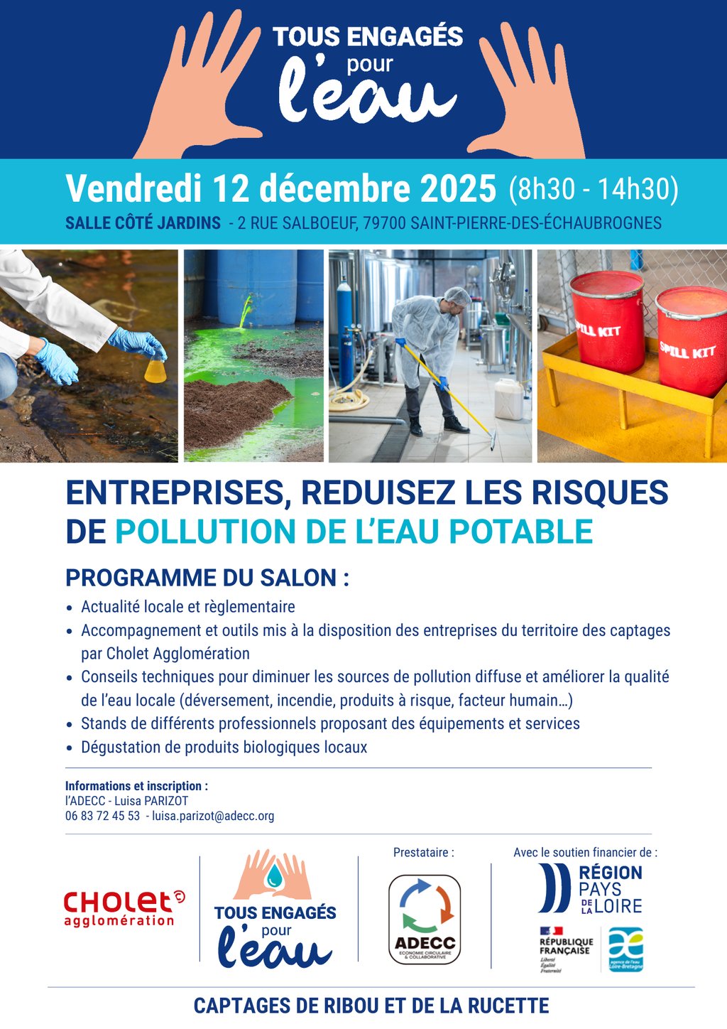 La commune de Maulévrier faisant partie de l'AAC de Ribou ou de La Rucette, les entreprises du secteur sont conviées par Cholet Agglomération et l’ADECC, à participer à un mini salon « spécifique prévention de la ressource eau », gratuit et ouvert à tous (cf Flyer) qui aura lieu le :