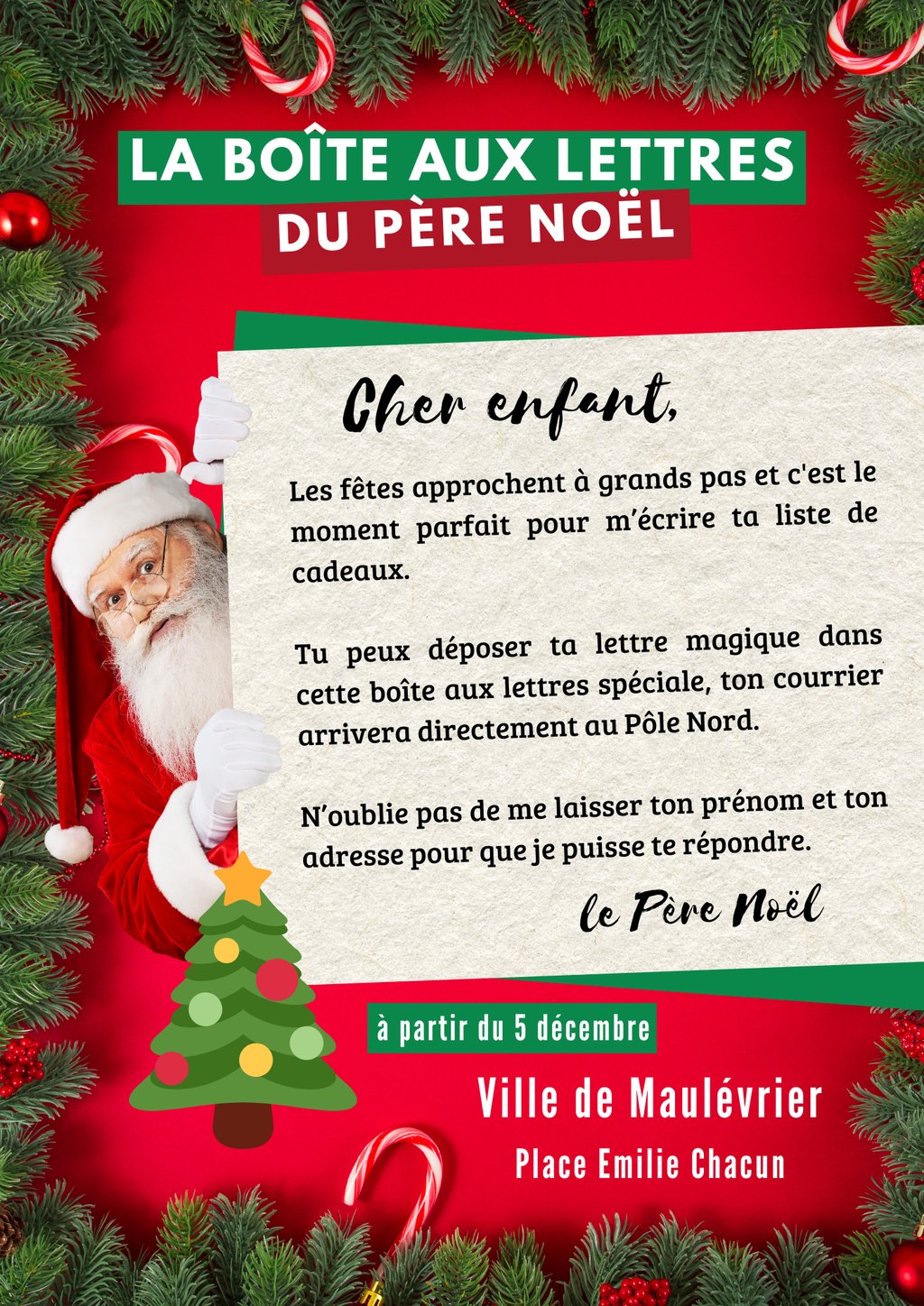 Le Père Noël invite tous les enfants à venir déposer leur lettre dans la grande boîte aux lettres lumineuse située sur la Place Émilie Chacun.