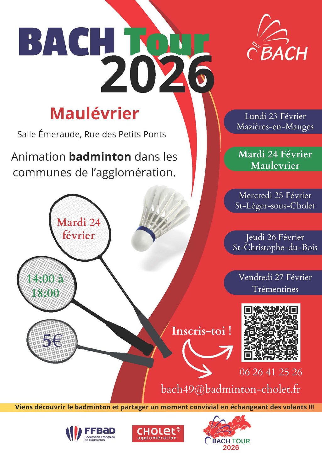 Le badminton associatif choletais (BACH) relance le BACH Tour avec l’appui de l’agglomération dans le but de faire découvrir le badminton, sport olympique et paralympique, aux habitants du territoire.
