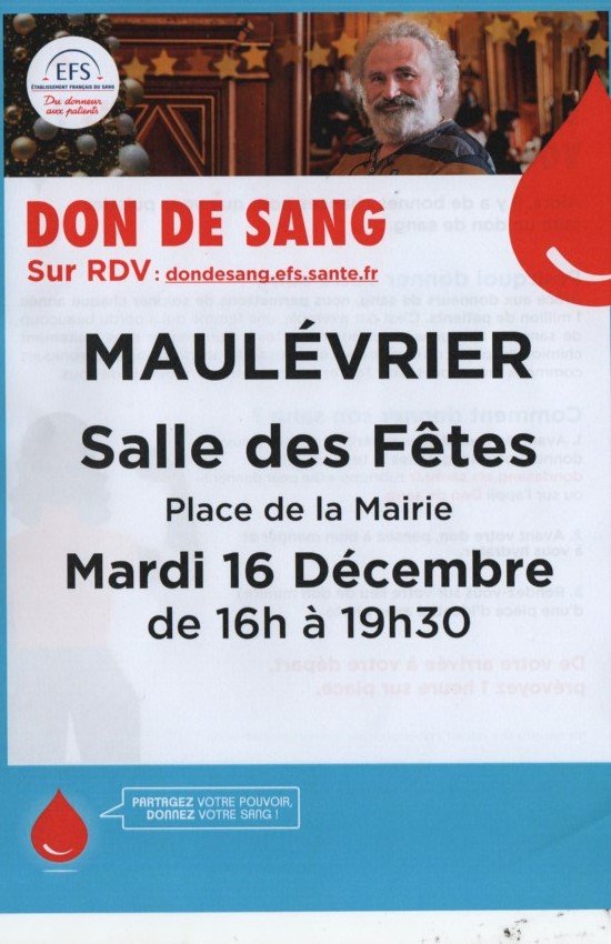 inscription collecte don du sang du 16 décembre à Maulévrier