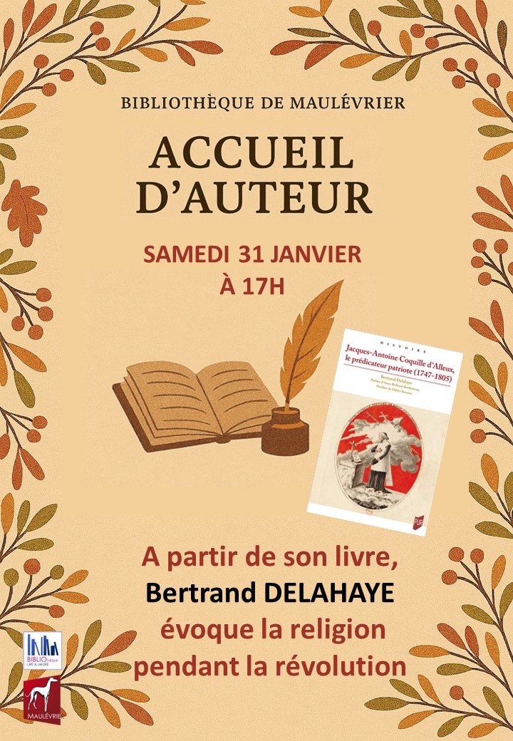 Nous avons le plaisir d’accueillir Bertrand Delahaye, auteur du livre Jacques-Antoine Coquille d'Alleux, le prédicateur patriote, le vendredi 31 janvier 2026 à 17h à la bibliothèque.
