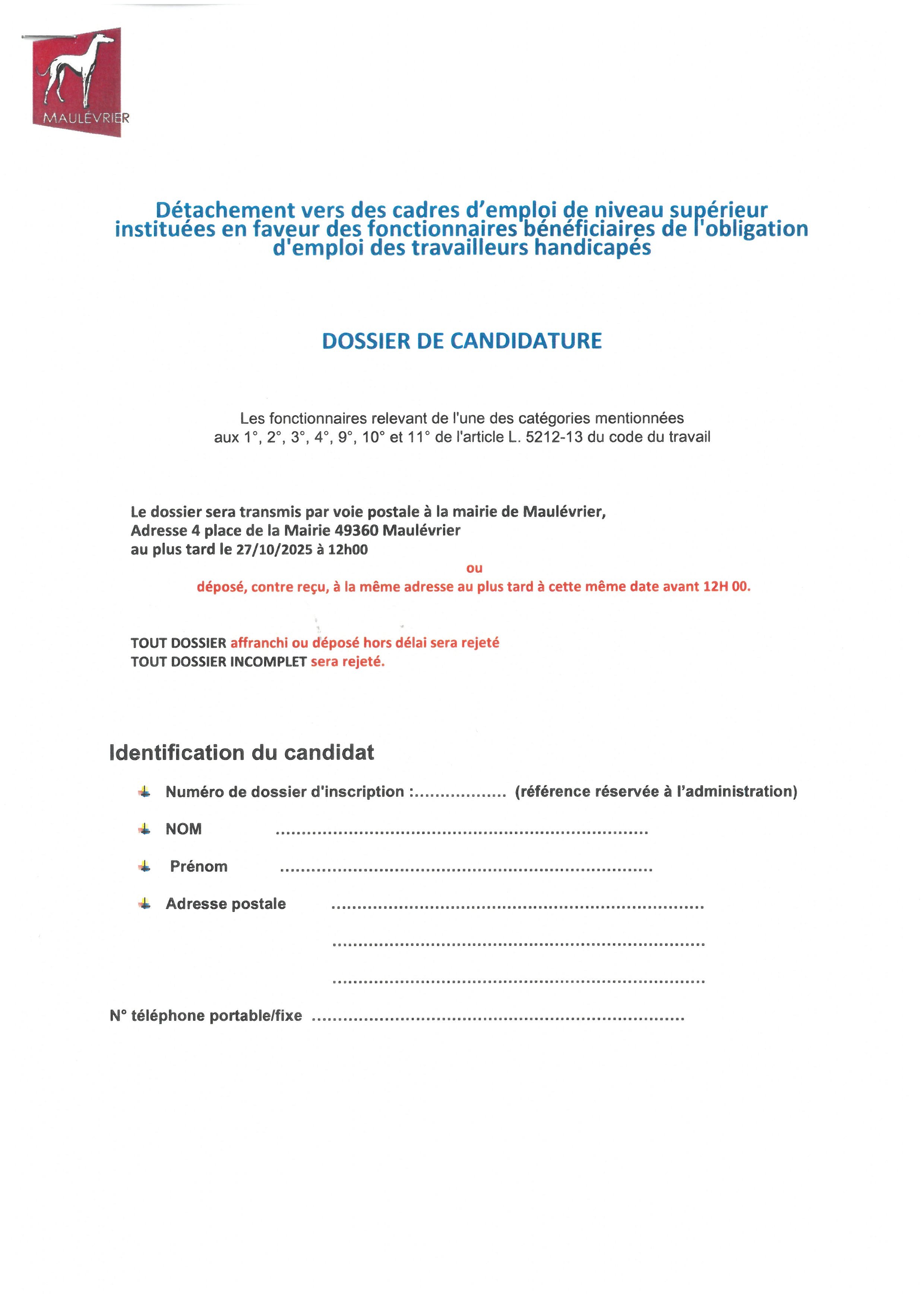 Si vous êtes intéressé(e), merci d’adresser un courrier et un CV au service Ressources Humaines de la collectivité.
